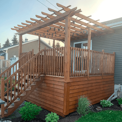 C’est ce qu’on fait un des clients de notre franchisé en agrandissant leur espace de vie avec une terrasse adjacente, protégée par une magnifique pergola couverte. La combinaison parfaite pour profiter de l’extérieur durant la saison estivale.